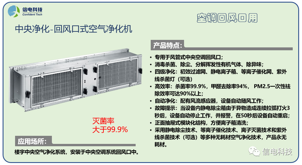 (注:信電中央凈化系統(tǒng)是高效低風(fēng)阻空氣凈化機(jī),無需耗材)