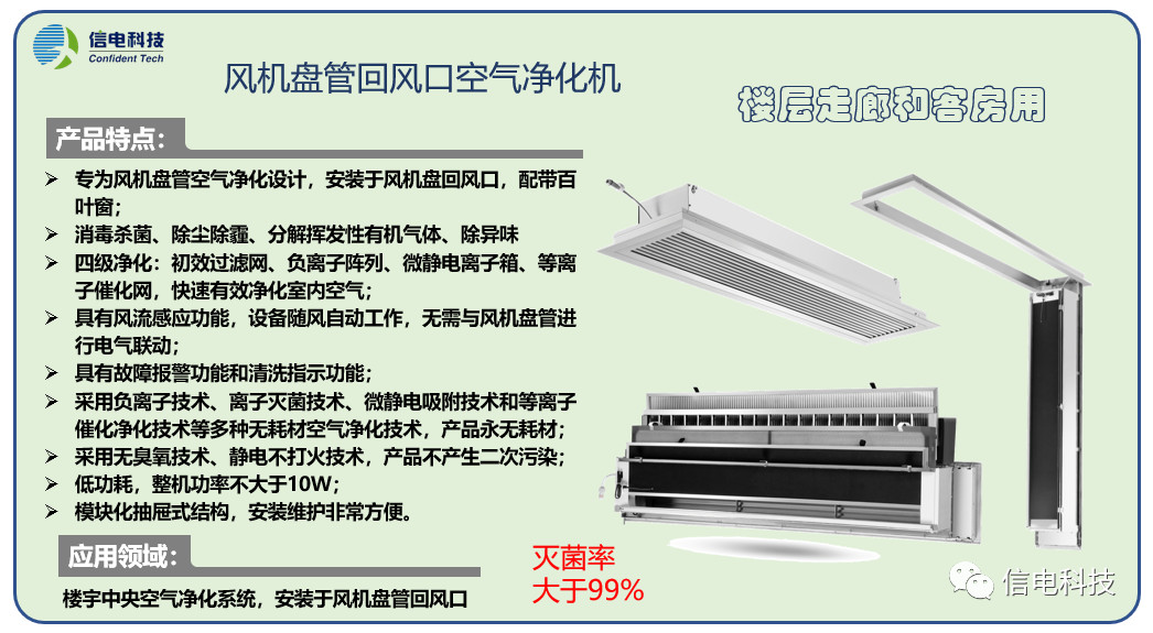 (注:可用信電風(fēng)機(jī)盤管回風(fēng)口式空氣凈化,無耗材設(shè)計(jì))