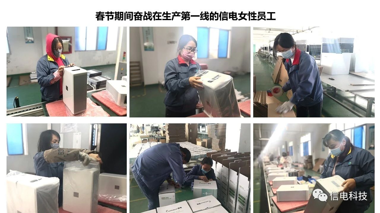 面對這場突如其來的疫情抗擊戰(zhàn),作為專業(yè)設(shè)計(jì)、生產(chǎn)和銷售空氣凈化消毒機(jī)及其核心部件的國家高新技術(shù)企業(yè),信電科技部分員工放棄春節(jié)假日休息時間,奮戰(zhàn)在生產(chǎn)和市場第一線,盡可能快地滿足各地醫(yī)院和公共場所對空氣凈化消毒機(jī)的需求。公司早在1月30日就開始復(fù)工上班,那時奮戰(zhàn)在生產(chǎn)和市場第一線的女性員工有:陳秋(品質(zhì)部)、吳志艷(開發(fā)部)、張秋梅(財(cái)務(wù)部)、梁詩儀(生產(chǎn)部)、鐘麗芬(生產(chǎn)部)、范閑君(生產(chǎn)部)、賈小紅(生產(chǎn)部)、鄭艷(生產(chǎn)部)、李娜(市場部)、謝丹(市場部)、張丹(東北分公司)。