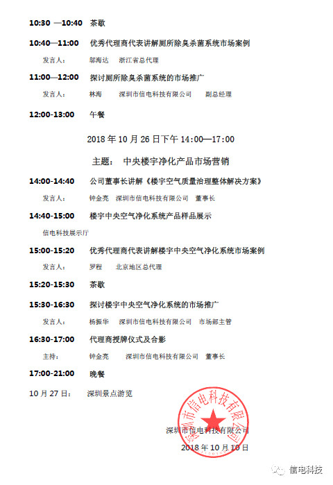 10月26日上午9點(diǎn),伴隨著深圳信電科技董事長(zhǎng)鐘博士的歡迎辭,核心代理商會(huì)正式開始。