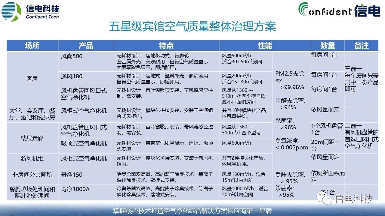 隨后詳細(xì)介紹了信電樓宇中央空氣凈化系統(tǒng),特別以五星級(jí)賓館為例,講述了《五星級(jí)賓館信電科技空氣質(zhì)量治理整體解決方案》。