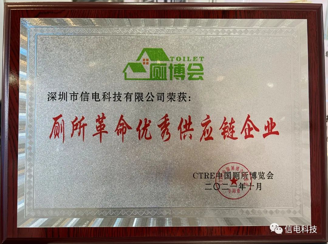 展會(huì)期間,還給信電科技頒發(fā)了《廁所革命優(yōu)秀供應(yīng)鏈企業(yè)》的光榮稱號,這是行業(yè)對信電科技所做努力的認(rèn)可。