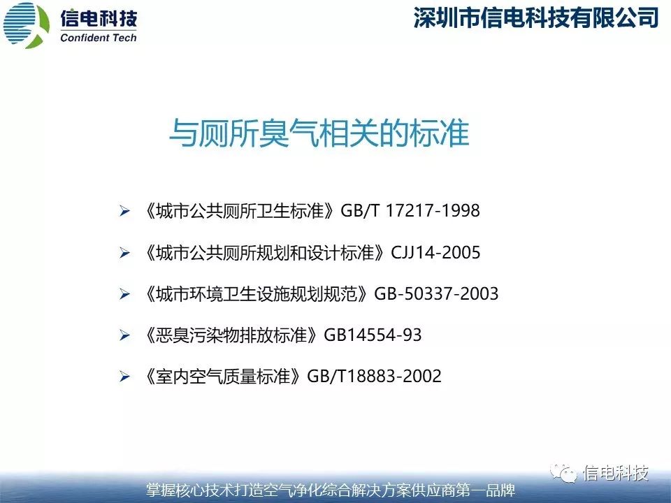 隨著時代的發(fā)展,人們對廁所空氣質(zhì)量的要求也跟著提高,上表是信電科技總結(jié)各類有關(guān)空氣質(zhì)量國家標(biāo)準(zhǔn),提出的對廁所空氣質(zhì)量要求的建議標(biāo)準(zhǔn)要求。
