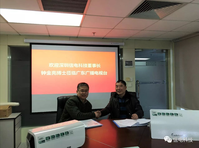 2018年2月6日,信電科技董事長鐘金亮博士與深圳市廁所革命公益基金會林衛(wèi)主任一起受邀前往廣東廣播電視臺參加簽約儀式和參觀《廣東民聲熱線》直播現(xiàn)場。